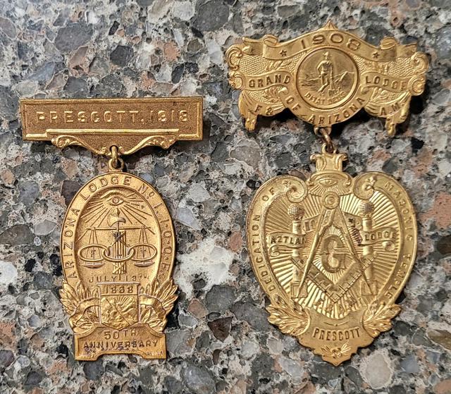 Prescott fraternal pins - 1918 Odd Fellows & 1908 Masonic pins.